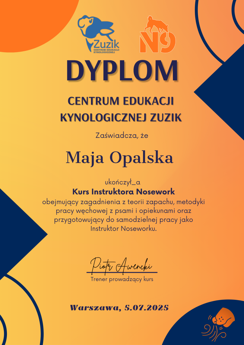 Zajęcia dla psów w każdym wieku o absolutnie każdym usposobieniu – dla lękusków, a także dla piesków nadmiernie ekscytujących się, reaktywnych. Nosework polega na znajdowaniu przez psa źródła zapachu cynamonu, goździka i pomarańczy, pomaga w nauce skupienia, spokojnej pracy, buduje pewność siebie, „odkleja” psa od opiekuna, pozwala mu podejmować samodzielne decyzje. Zajęcia odbywają się przy ul. Mitery w Krakowie.