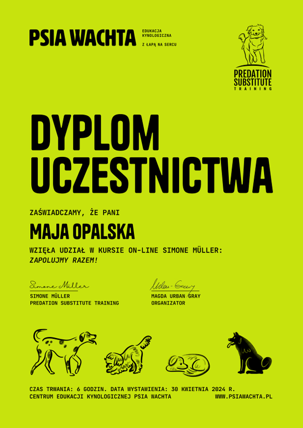 Hej! Jeśli jesteś na tej stronie, to znaczy, że zależy Ci na relacji ze swoim psem i chcesz go zrozumieć, lepiej poznać, być może pomóc mu w jego trudnościach, wesprzeć w lękach albo okiełznaniu rozhulanych emocji. Chętnie podzielę się swoją wiedzą zdobytą na licznych kursach